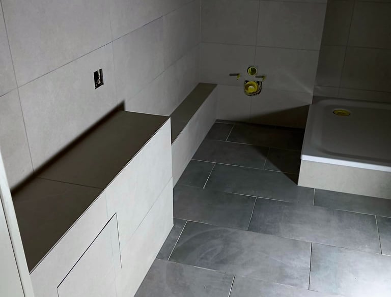 Lavori di posa piastrelle, rifacimento bagni e rivestimenti su misura.